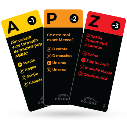 Dacă nimeni nu va răspunde corect, jucătorul care a citit întrebarea va colecta din cutie 1, 2 sau 3 cărți noi, în funcție de punctajul cărții de pe care a citit.