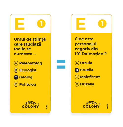 Fiecare jucător își va alege un pion și un set de 4 cărți cu opțiunile de răspuns ABCD, din cele 4 seturi disponibile (pentru 4 jucători).