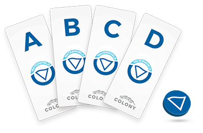 Fiecare jucător își va alege pionul preferat și setul de cărți cu opțiunile de răspuns A-B-C-D.